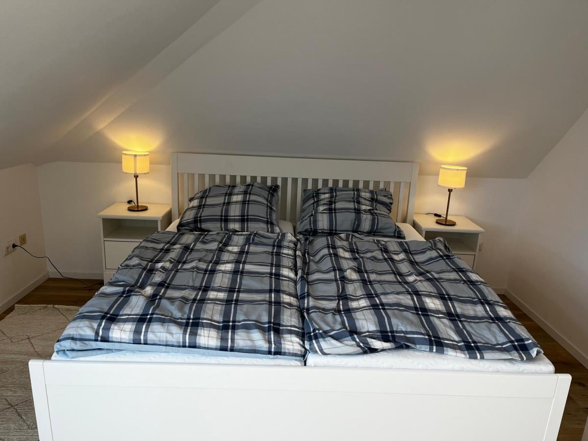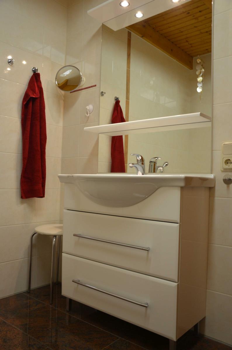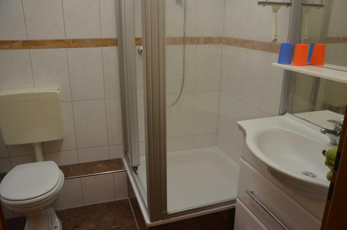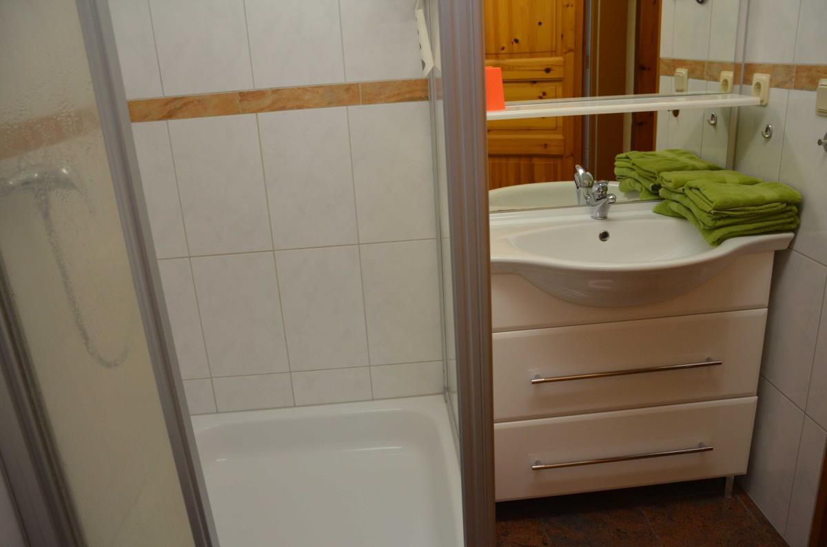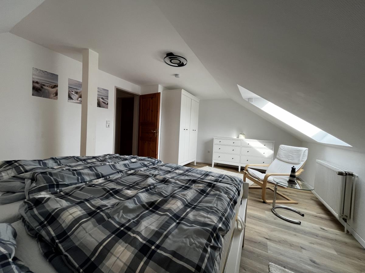 Obergeschoss: ein Schlafzimmer mit Doppelbett (2x 0,90x2,00) und 1 Kinderreisebett, sowie ein Bad mit Dusche und WC.