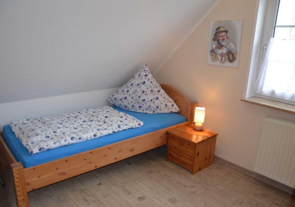 Im Obergeschoss befinden sich drei geschmackvoll eingerichtete Schlafzimmer, deren Böden mit pflegeleichtem Laminat ausgelegt sind. Das erste Schlafzimmer ist mit einem Doppelbett (2x 0,90x2,00) und einem Kinderreisebett ausgestattet. Das zweite Schlafzimmer bietet ein Doppelbett (2x 1,00x2,00) sowie einen Fernseher, während das dritte Schlafzimmer mit zwei Einzelbetten (0,90x2,00) aufwartet. Das Badezimmer ist mit einer Dusche und WC ausgestattet. Für Familien mit kleinen Kindern gibt es eine kinderfreundliche Ausstattung, die den Aufenthalt so angenehm wie möglich gestaltet, darunter eine Wickelauflage, ein Kinderreisebett und einen Hochstuhl.