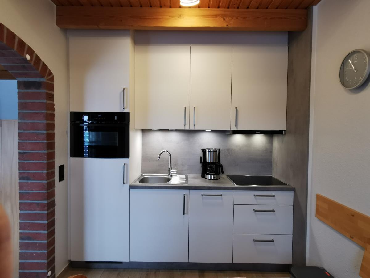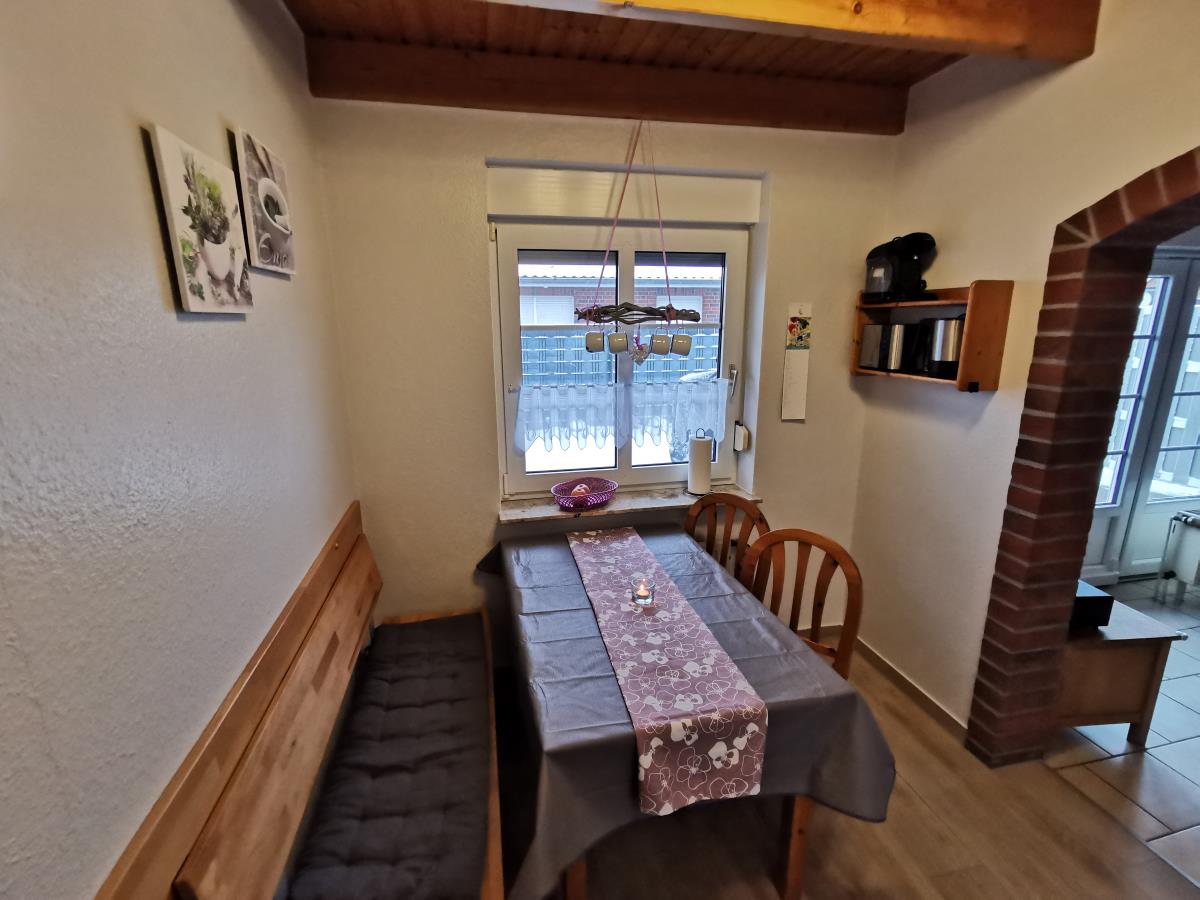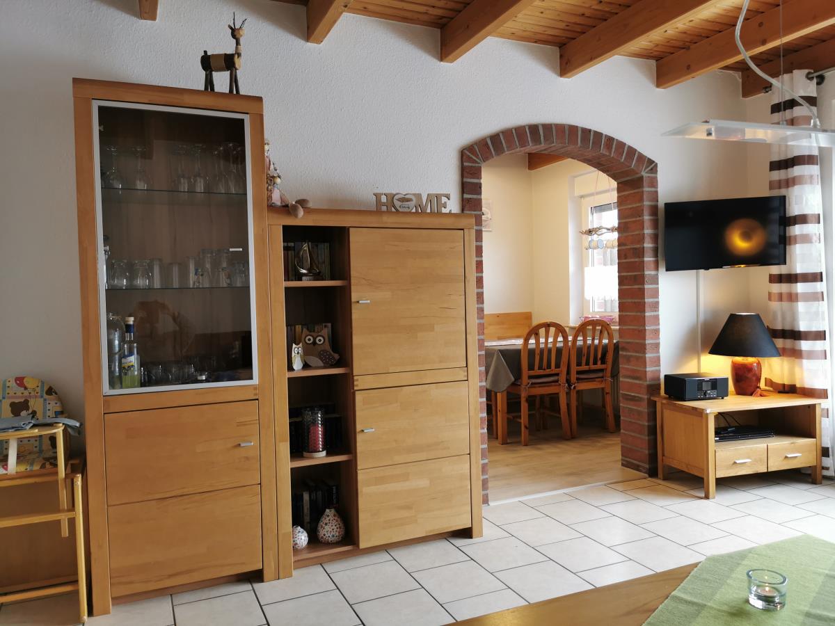 Zwei der drei Schlafräume befinden sich im Erdgeschoss: Das große Schlafzimmer mit Doppelbett (2x 1,00m x 2,00m) und Holz-Kinderbett, sowie das kleine Schlafzimmer mit einem Einzelbett (0,90m x 2,00m). Das frisch renovierte Badezimmer mit ebenerdiger Dusche, WC, Waschbecken, Waschmaschine und Fußbodenerwärmung. Wohn-Koch- und Essbereich mit moderner Küchenzeile mit Spülmaschine, Kühlschrank mit Eisfach, Herd, Backofen, Mikrowelle etc. (komplett ausgestattet) sowie Essecke mit Hochstuhl, Ledergarnitur, Fernseher, DVD-Player und Internetradio/CD-Player mit direktem Zugang zu Terrasse (Westen) und sichtgeschütztem Garten mit ansprechenden Gartenmöbeln und Strandkorb.