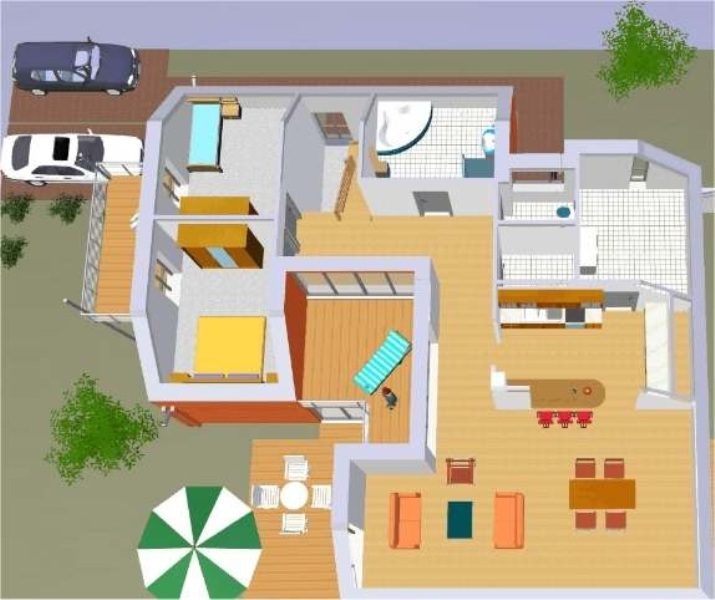 Unterhaltung sorgt. Die teilweise überdachte Loggia lädt zum entspannten Stunden im Freien ein.